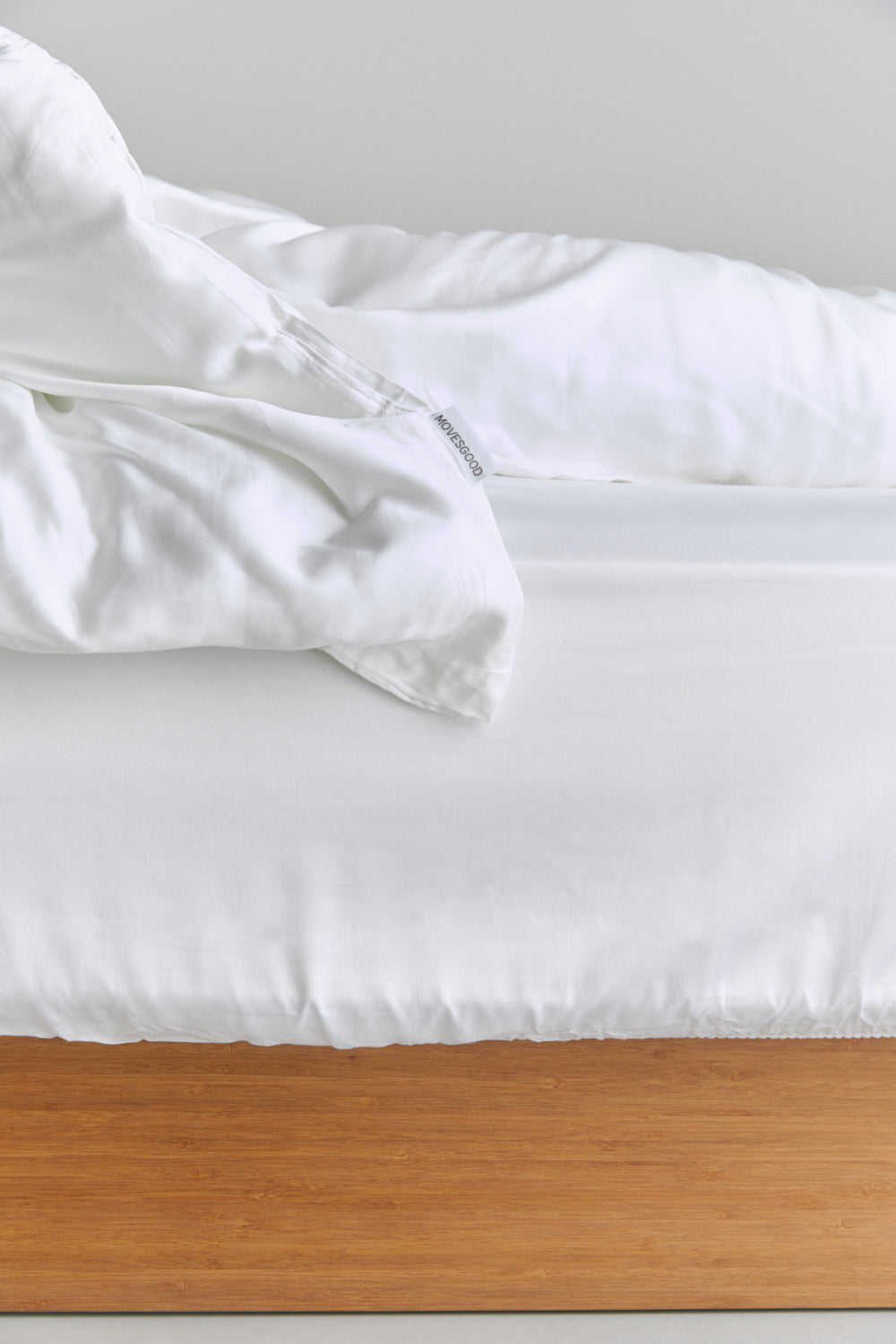 Movesgoodin klassiset vuodesettit sisältävät pussilakanan (220 x 220 cm) ja kaksi tyynylinaa (50 x 60 cm). Pehmeä lyocell-bambukangas jossa lankaluku on 300TC. Eksklusiivinen materiaali hengittää, on lämpöäsäädettävä, antibakteerinen ja hypoallergeeninen, mikä tekee siitä täydellisen nukkumiseen.