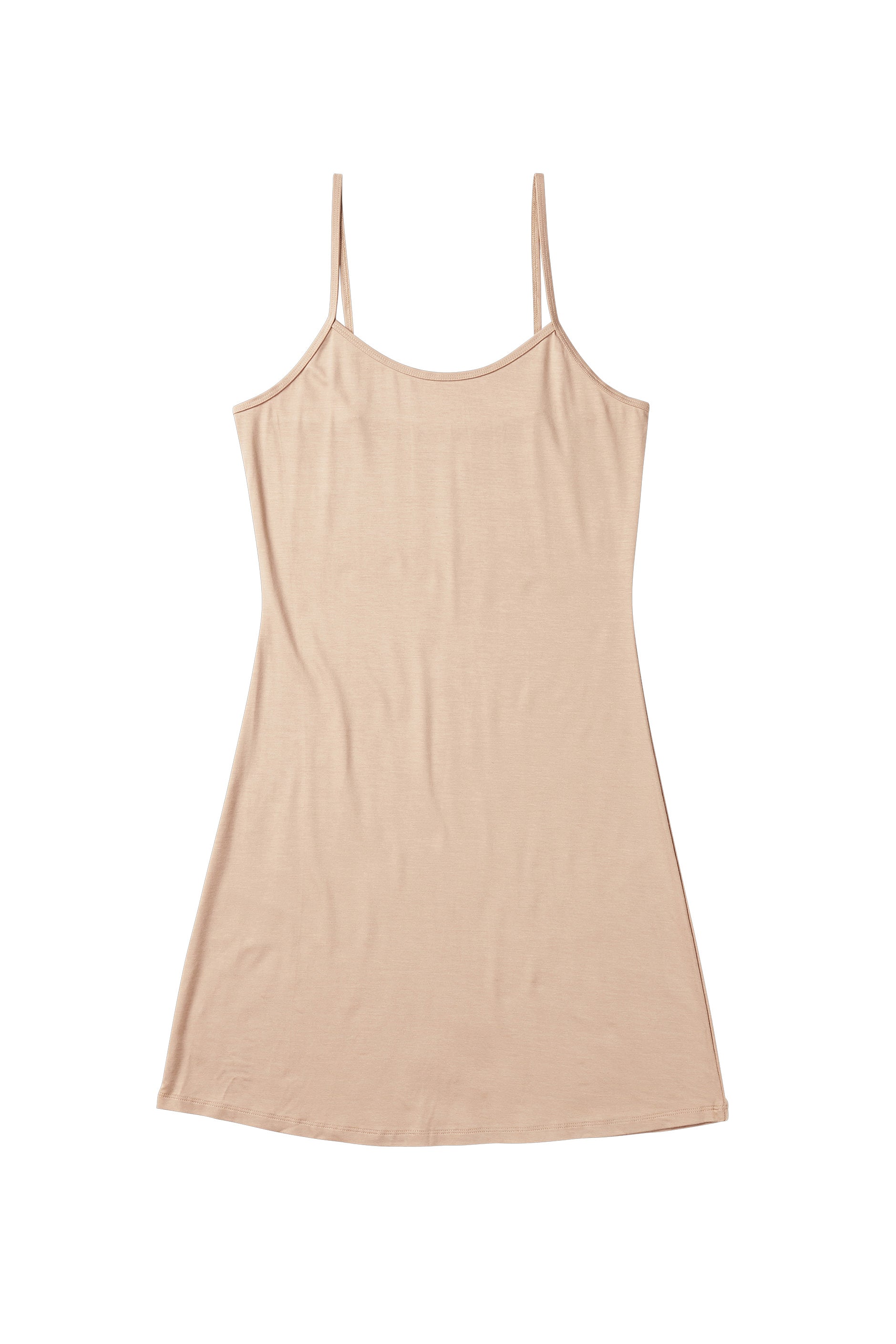 Superpehmeä Everyday Slip Dress alusmekko sopii täydellisesti tummien tai vaaleiden suosikkivaatteidesi alle. Sen materiaali on istuva ja sitä on saatavana värissä: musta ja manteli.