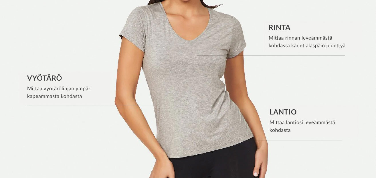 Koot perustuvat vartalon mittoihin, eivät vaatteiden mittoihin. Suosittelemme, että sallit 1-3 cm eron mukavuuden vuoksi. Jos olet kokojen välissä, suosittelemme nostamaan yhden koon.