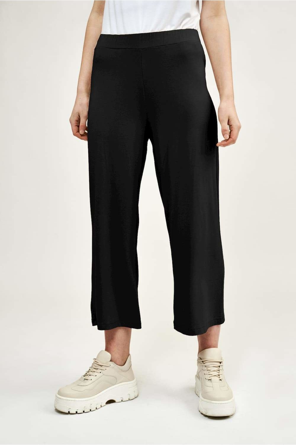 Leveät nilkkahousut jossa vyötärössä joustava kuminauha. Sopii päivittäiseen vaatetukseen ja myös eri harrastuksiin. Valmistettu erittäin pehmeästä lyocell-bambu materiaalista, joka hengittää ja on antibakteerinen.