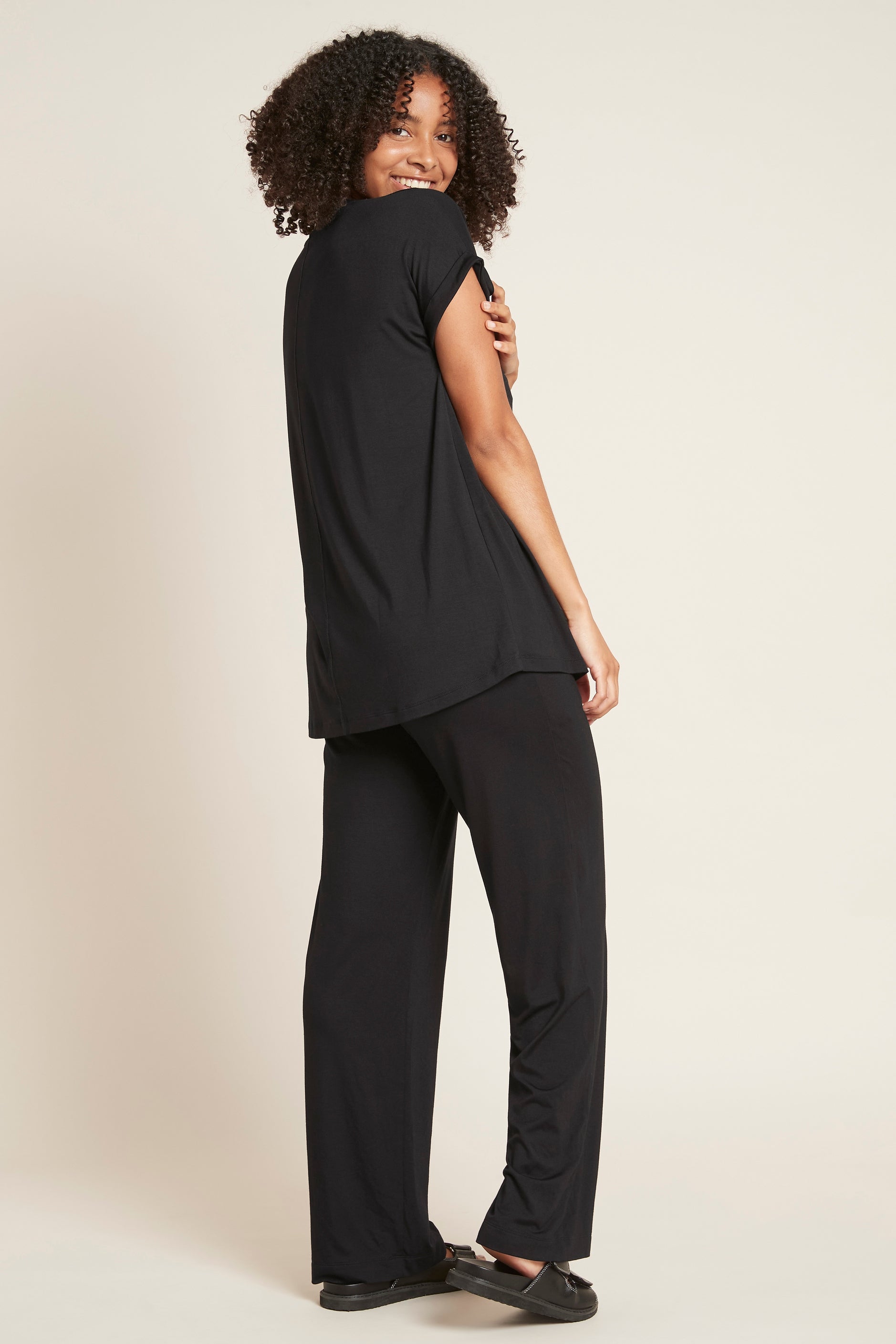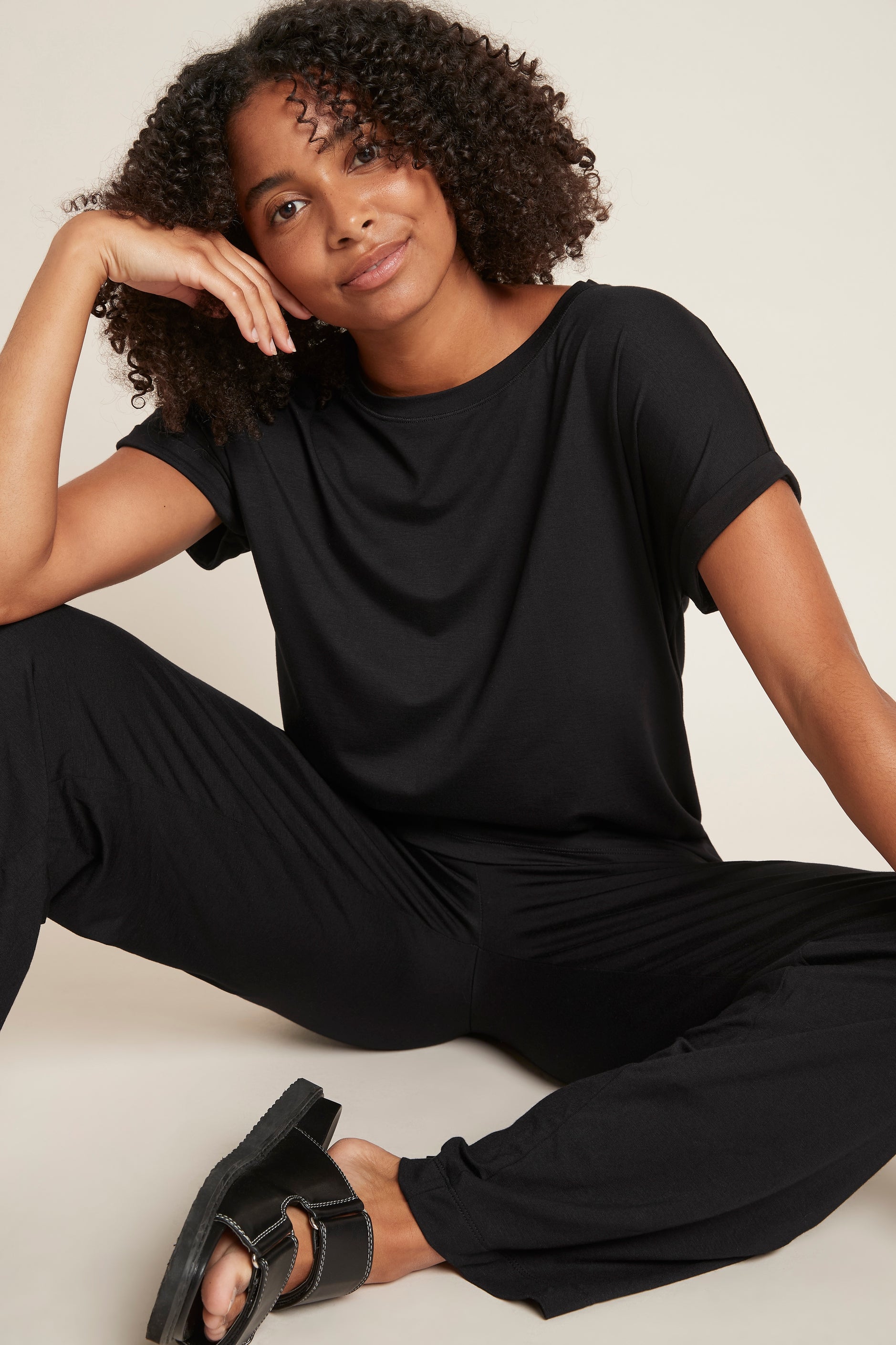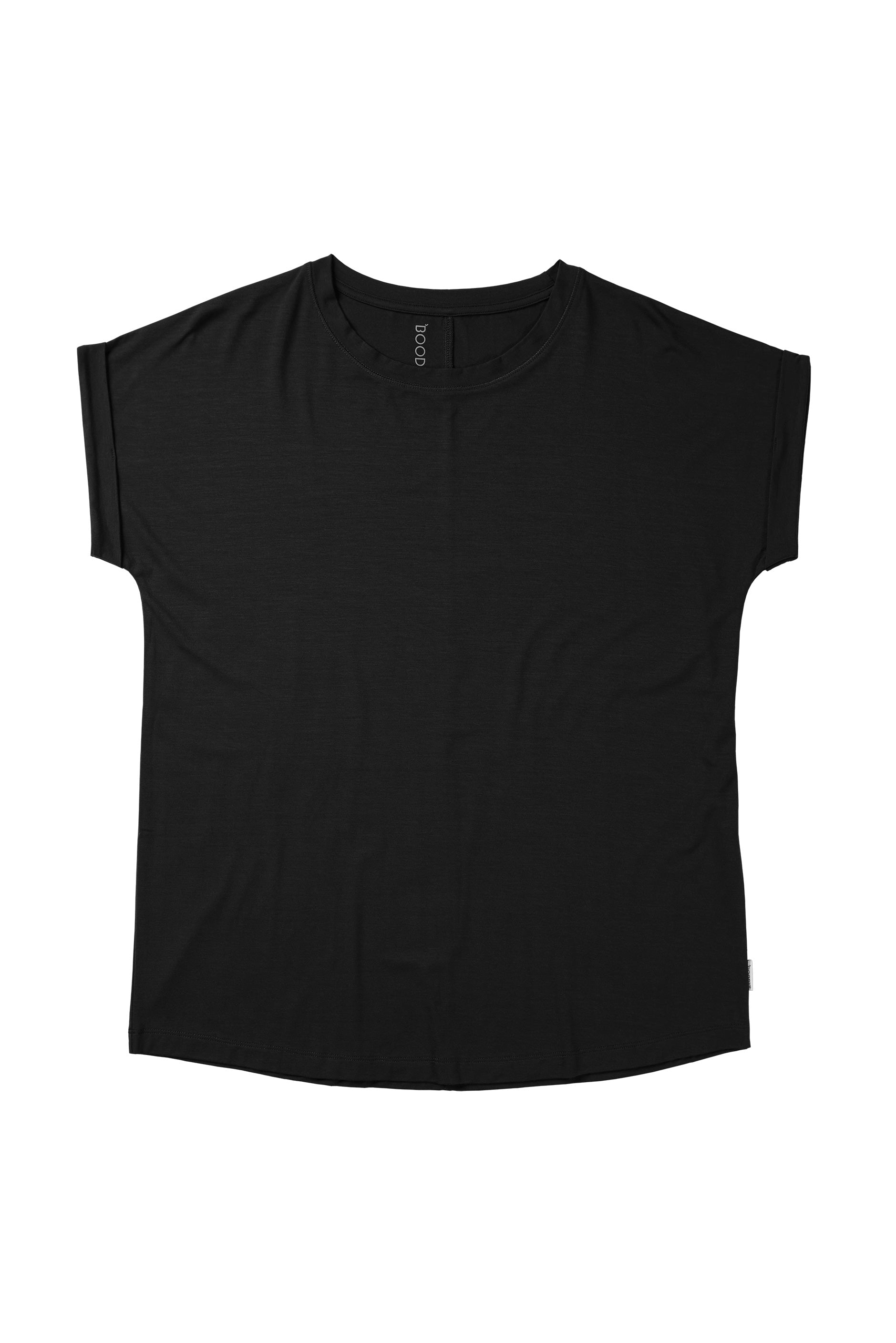 Tämä t-paita bambuviskoosista valmistettu on silkinpehmeä, se pitää sinut viileänä ja on mukavan joustava päällä. Bambukankaamme säilyttää muotonsa ja sopii erinomaisesti herkälle iholle, sillä bambukuidut ovat luonnostaan sileitä ja pyöreitä, eikä ne ärsytä ihoa.Ylellisen pehmeä naisten t-paita sopii täydellisesti kotona oleskeluun tai suosikkifarkkujesi kanssa saadaksesi rennon ja mukavan lookin. Boody t-paidoista on tullut ajattomia perusvaatteita jokaisen naisen vaatekaappiin. T-paidat ovat reilun kokoisia, jos et halua reilun tunnetta ota yksi pienempi koko.