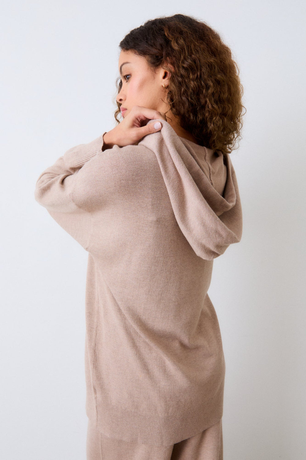 Tunt stickad huvtröja med rak passform och långa snören i bambu- och återvunnen kashmir. Hommie Hood ligger lätt och mjukt mot din hud tack vare det naturliga andningsbara materialet. Denna huvtröja är lika elegant som den är bekväm och kan matchas till både kjolar och byxor, på jobbet eller hemma. De naturliga materialen kashmir och bambu är snälla mot känslig hud och samtidigt miljövänliga.